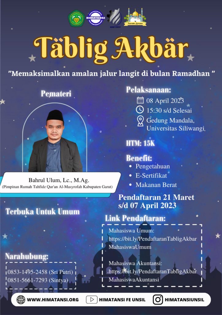 Selain kepengurusan HIMATANSI yang baru, sistem perkuliahan di Universitas Siliwangi khususnya di Fakultas Ekonomi juga sudah full offline semenjak Agustus kemarain loh. Tidak hanya perkuliahan saja yang full offline, tapi semua event proker dari HIMATANSI juga sudah mulai dilaksanakan secara offline atau tatap muka. Nah, adapun salah satu event yang baru saja selesai dilaksanakan secara offline pada pertengahan ramadhan kemarin yaitu Favorable Ramadan 2023. Penasaran kan gimana jalannya event Favorable Ramadan kemarin ? Yuk lansung saja simak review event Favorable Ramadan 2023.