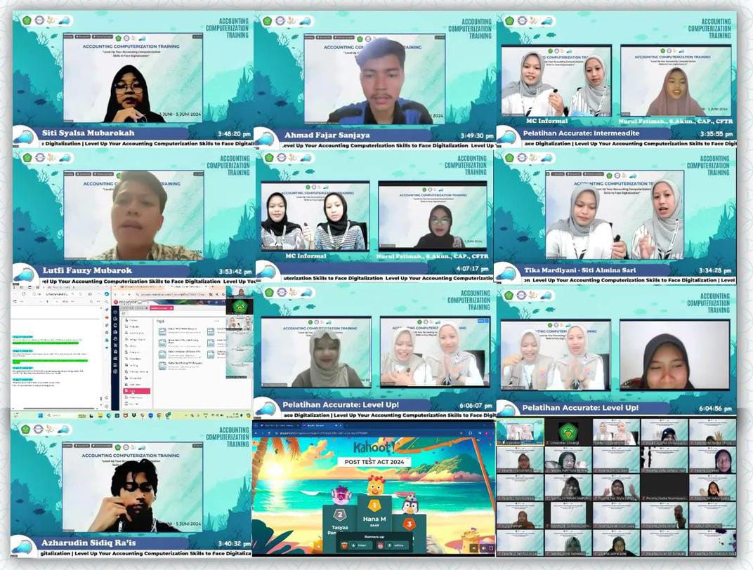 “Level Up Your Accounting Computerization Skills to Face Digitalization!” yang dalam bahasa Indonesia berarti “Tingkatkan Keterampilan Komputerisasi Akuntansimu Untuk Menghadapi Digitalisasi”. Harapannya dengan diselenggarakannya Accounting Computerization Training ini dapat meningkatkan penguasaan komputerisasi akuntansi mahasiswa jurusan akuntansi, terutama software Accurate Online.